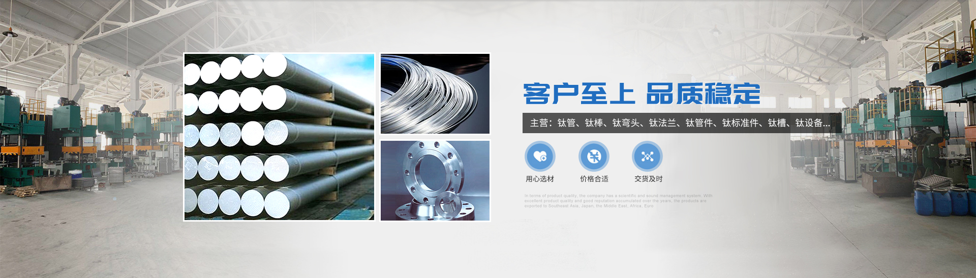 本公司的主營(yíng)產(chǎn)品鈦制品有,鈦管,鈦棒,鈦彎頭,鈦法蘭,鈦管件,鈦標(biāo)準(zhǔn)件,鈦槽,鈦設(shè)備,鈦沖壓彎頭等。所生產(chǎn)各種規(guī)格的鈦制品主要運(yùn)用于化工、電鍍、石油、電子、環(huán)保、海洋等領(lǐng)域"以質(zhì)量求生存,靠服務(wù)求發(fā)展“為宗旨,客戶(hù)的滿意是我們的追求,歡迎各界用戶(hù)來(lái)函來(lái)電,傳真,洽談貿(mào)易。